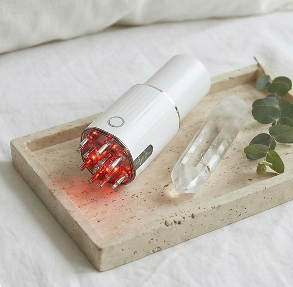 Touch: If you enjoy crystal healing, keep Smoky Quartz or Black Tourmaline near you to promote grounding. While the device stimulates your follicles, visualize energy flowing freely from the earth up into your roots.